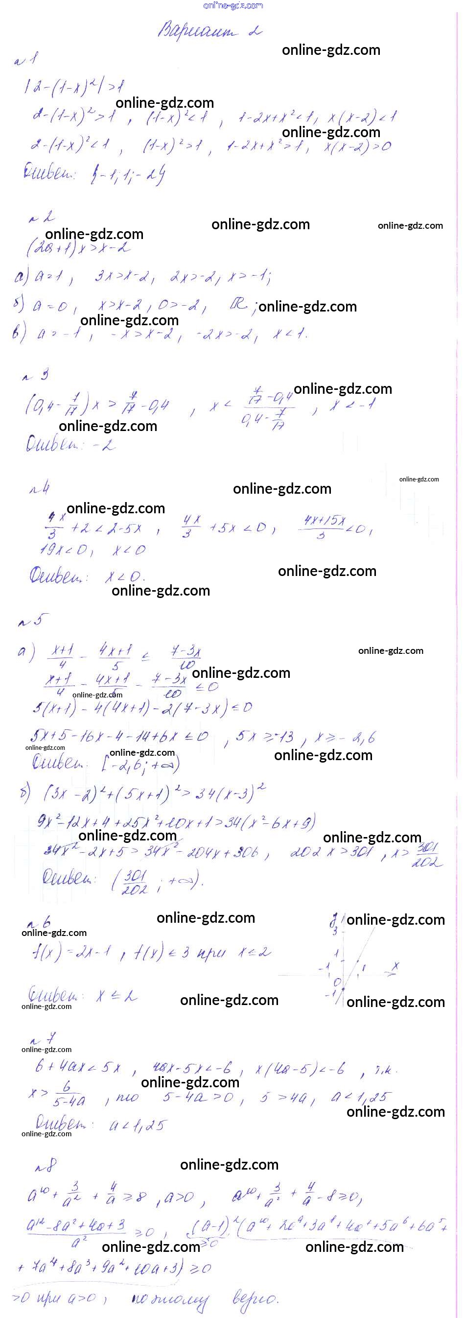 Готовые домашние задания по Алгебре за 8 класс Дидактические материалы Феоктистов 2013 - СР-19. Решение неравенств с одной переменной Самостоятельные работы вариант 2