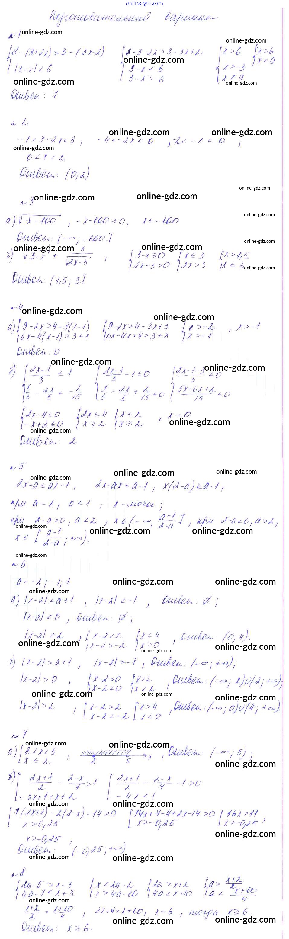 Готовые домашние задания по Алгебре за 8 класс Дидактические материалы Феоктистов 2013 - СР-20. Неравенства, содержащие модуль, системы и совокупности неравенств Самостоятельные работы подготовительный вариант