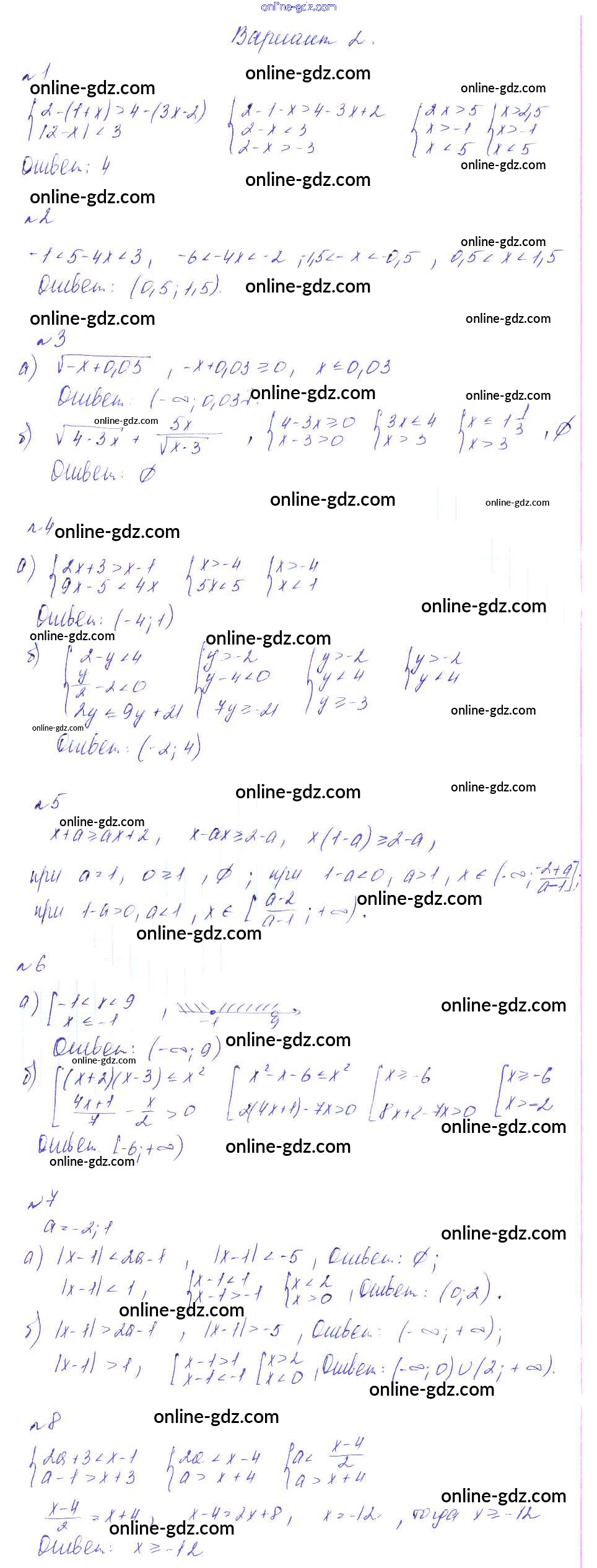Готовые домашние задания по Алгебре за 8 класс Дидактические материалы Феоктистов 2013 - СР-20. Неравенства, содержащие модуль, системы и совокупности неравенств Самостоятельные работы вариант 2