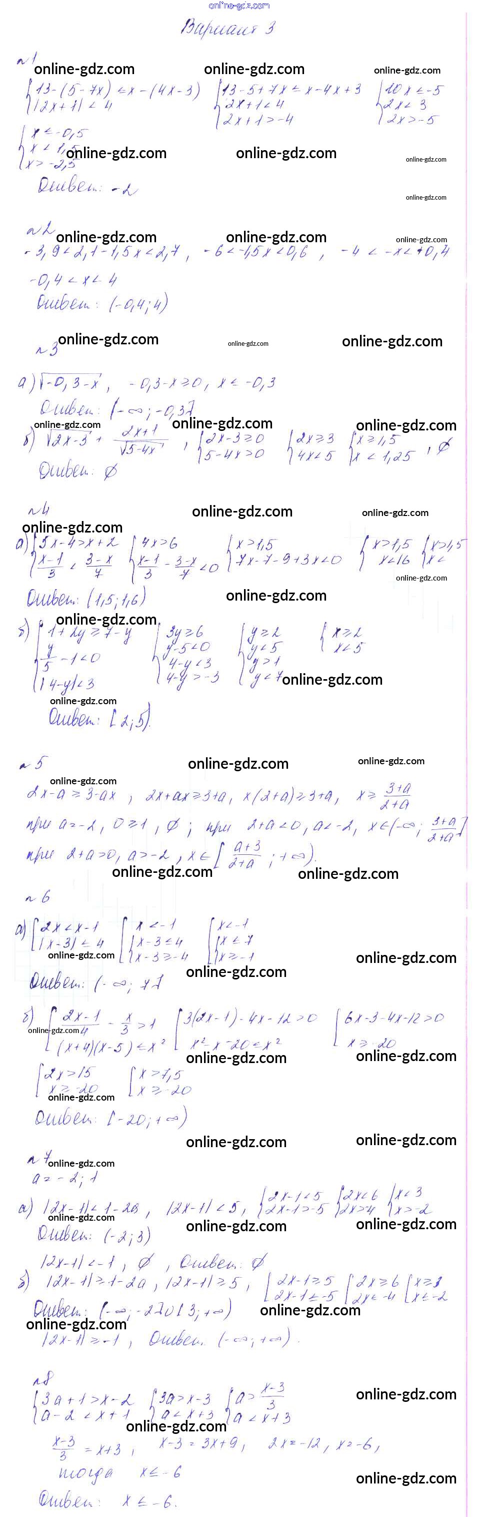 Готовые домашние задания по Алгебре за 8 класс Дидактические материалы Феоктистов 2013 - СР-20. Неравенства, содержащие модуль, системы и совокупности неравенств Самостоятельные работы вариант 3