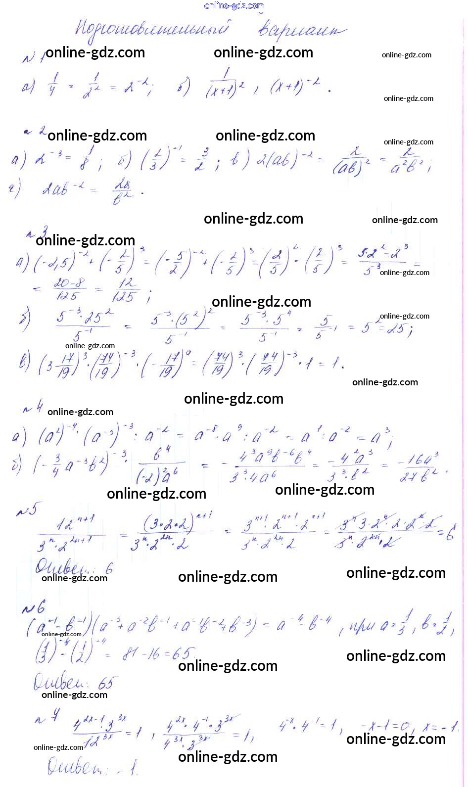 Готовые домашние задания по Алгебре за 8 класс Дидактические материалы Феоктистов 2013 - СР-21. Степень с целым показателем и её свойства Самостоятельные работы подготовительный вариант