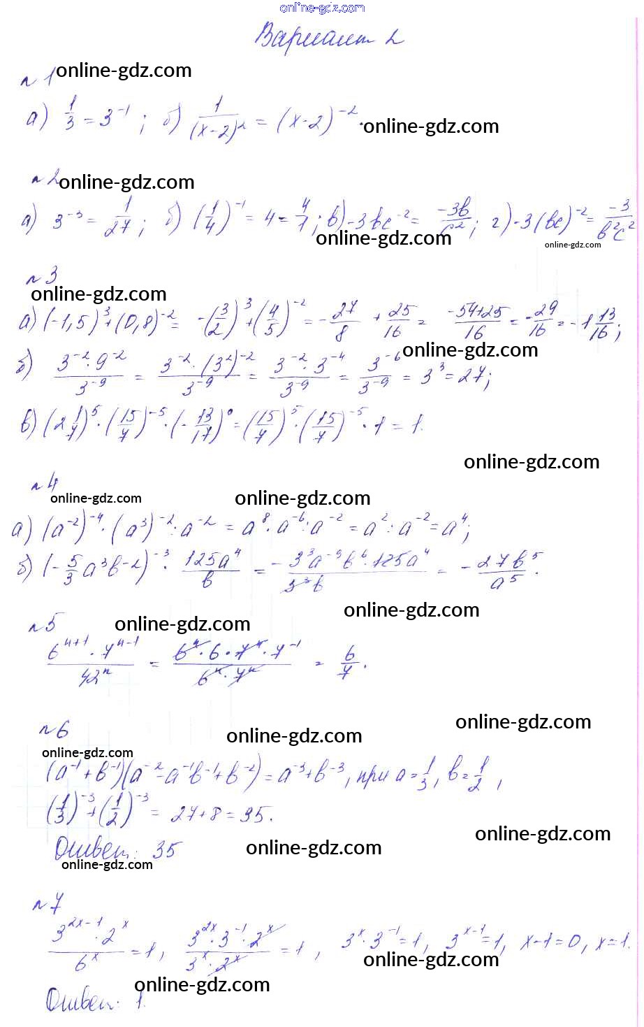 Готовые домашние задания по Алгебре за 8 класс Дидактические материалы Феоктистов 2013 - СР-21. Степень с целым показателем и её свойства Самостоятельные работы вариант 2
