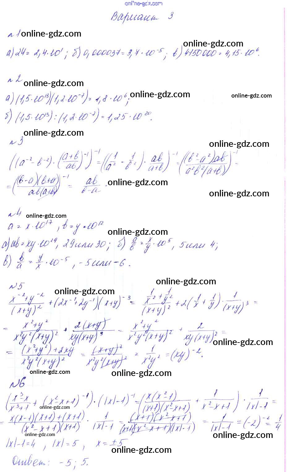 Готовые домашние задания по Алгебре за 8 класс Дидактические материалы Феоктистов 2013 - СР-22. Преобразование выражений, содержащих степени с целыми показателями. Стандартный вид числа Самостоятельные работы вариант 3