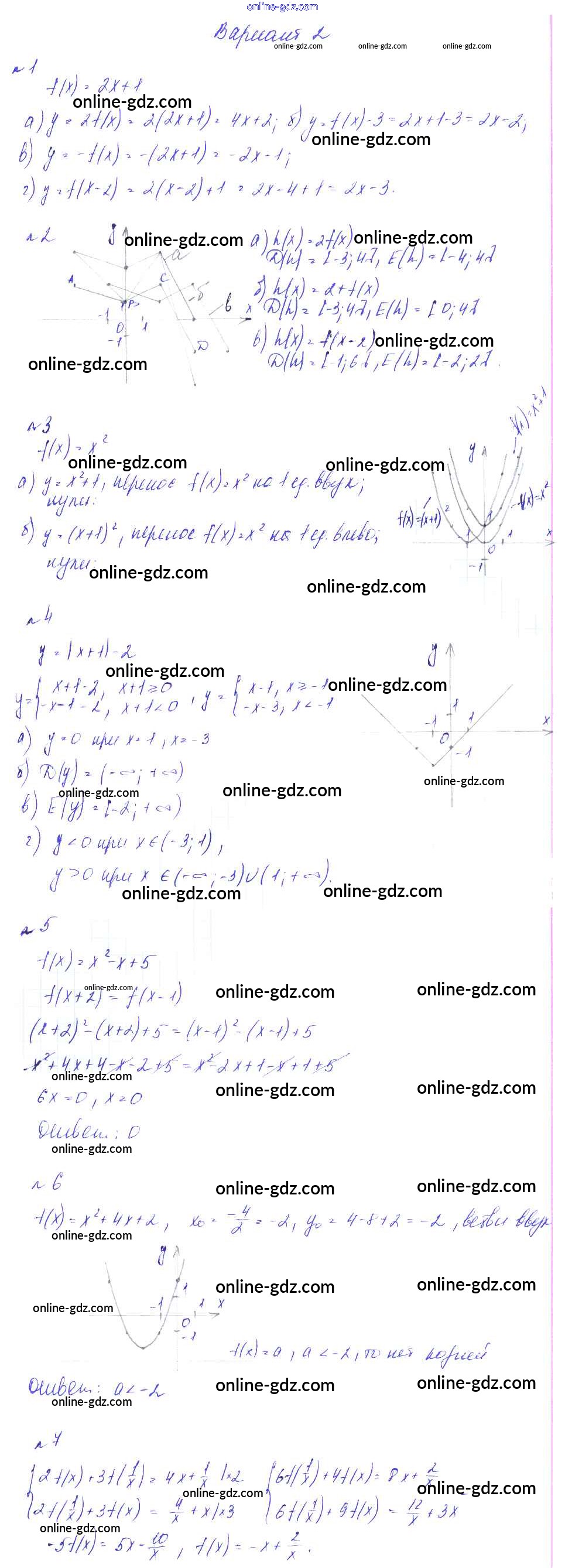 Готовые домашние задания по Алгебре за 8 класс Дидактические материалы Феоктистов 2013 - СР-23. Преобразование графиков функций Самостоятельные работы вариант 2