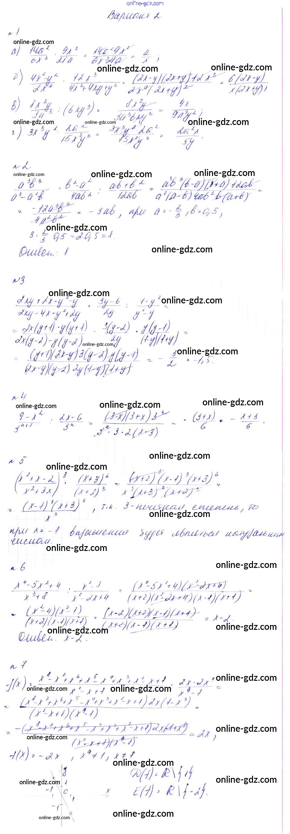 Готовые домашние задания по Алгебре за 8 класс Дидактические материалы Феоктистов 2013 - СР-4. Умножение, возведение в степень и деление дробей Самостоятельные работы вариант 2