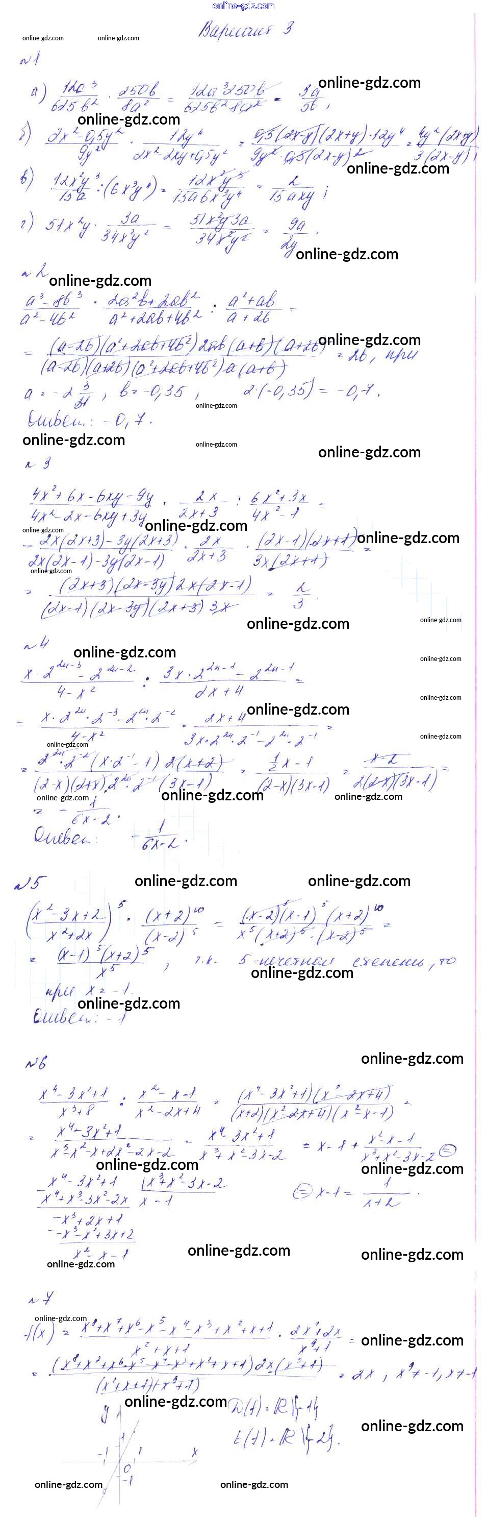 Готовые домашние задания по Алгебре за 8 класс Дидактические материалы Феоктистов 2013 - СР-4. Умножение, возведение в степень и деление дробей Самостоятельные работы вариант 3
