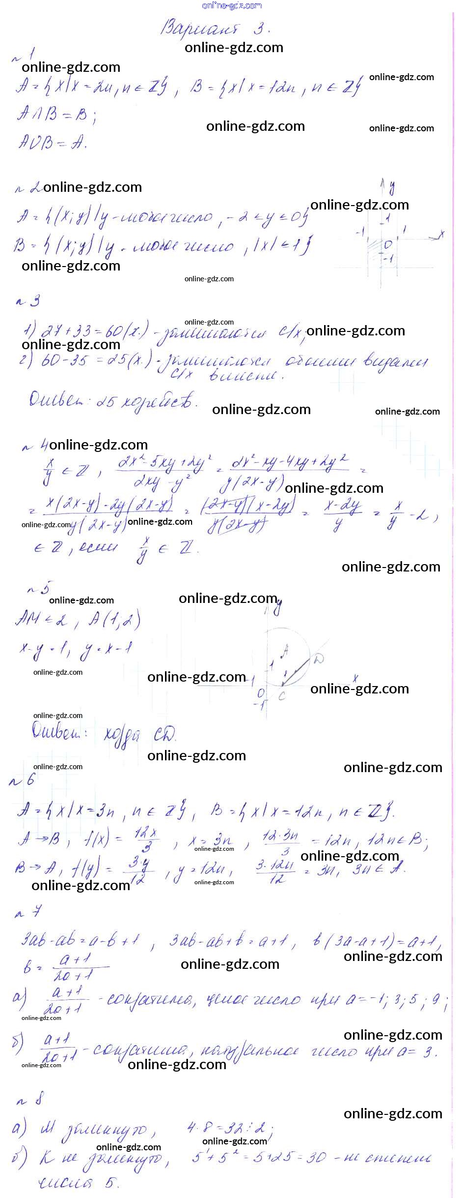 Готовые домашние задания по Алгебре за 8 класс Дидактические материалы Феоктистов 2013 - СР-6. Множество натуральных и множество целых чисел Самостоятельные работы вариант 3