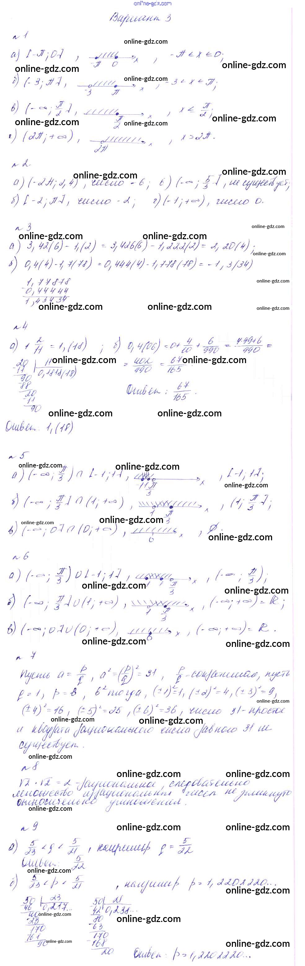 Готовые домашние задания по Алгебре за 8 класс Дидактические материалы Феоктистов 2013 - СР-9. Рациональные числа, действительные числа, числовые промежутки Самостоятельные работы вариант 3