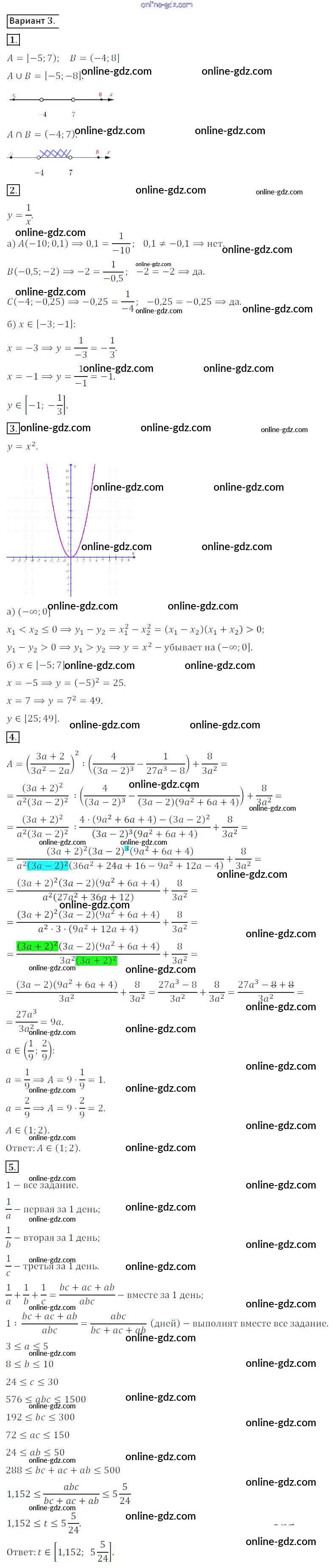 Готовые домашние задания по Алгебре за 8 класс Дидактические материалы Потапов, Шевкин МГУ - школе 2017 - КР №1 Контрольные работы вариант 3