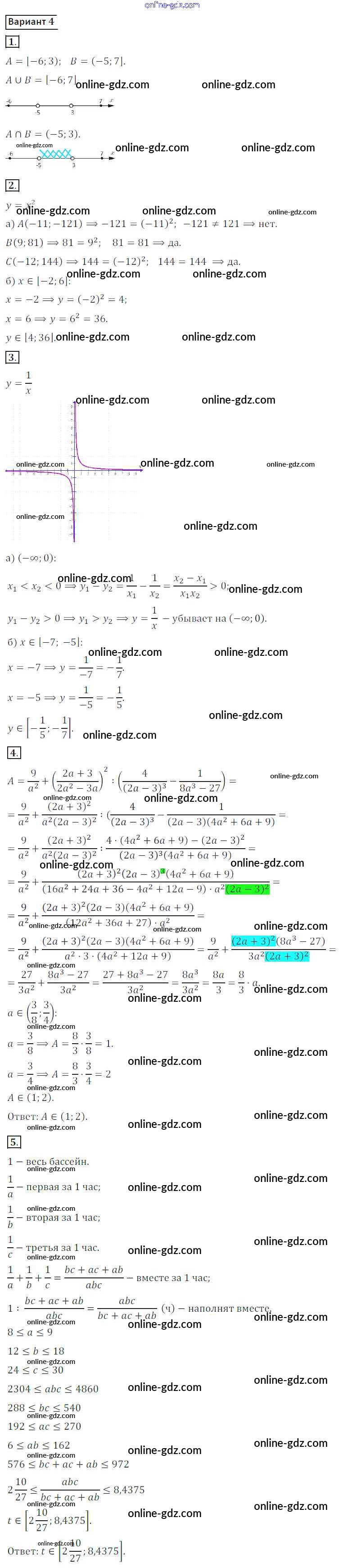 Готовые домашние задания по Алгебре за 8 класс Дидактические материалы Потапов, Шевкин МГУ - школе 2017 - КР №1 Контрольные работы вариант 4