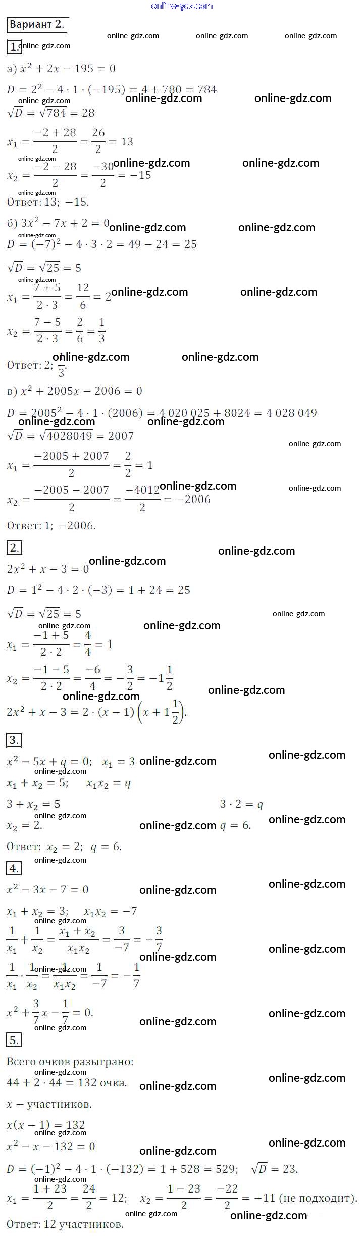 Готовые домашние задания по Алгебре за 8 класс Дидактические материалы Потапов, Шевкин МГУ - школе 2017 - КР №3 Контрольные работы вариант 2