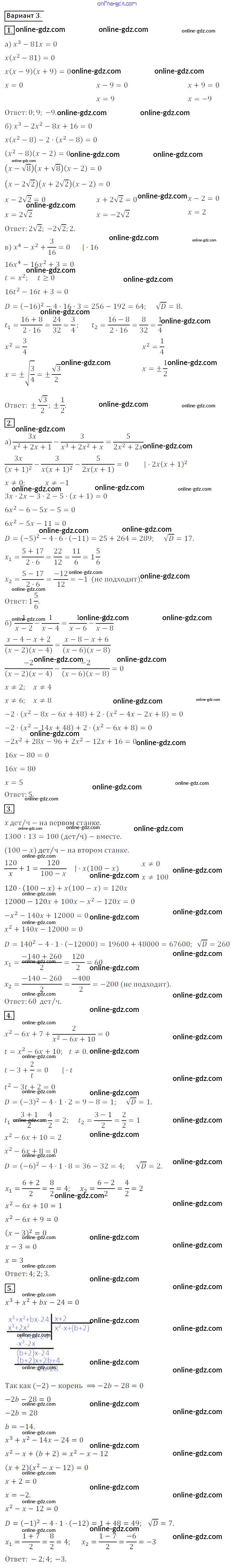 Готовые домашние задания по Алгебре за 8 класс Дидактические материалы Потапов, Шевкин МГУ - школе 2017 - КР №4 Контрольные работы вариант 3