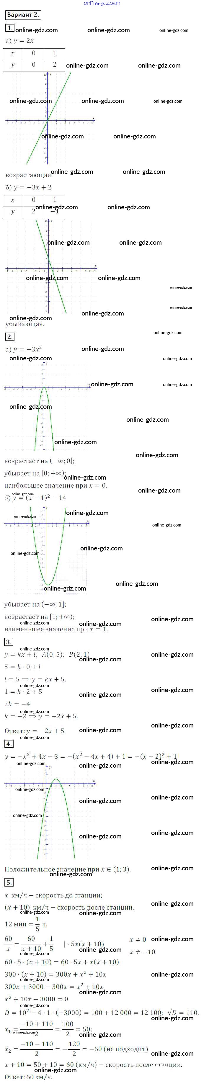 Готовые домашние задания по Алгебре за 8 класс Дидактические материалы Потапов, Шевкин МГУ - школе 2017 - КР №5 Контрольные работы вариант 2