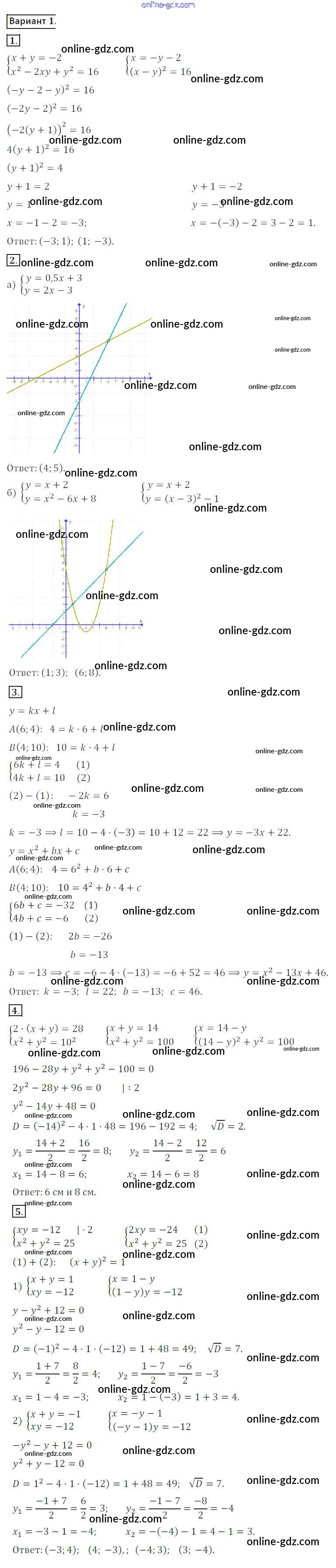 Готовые домашние задания по Алгебре за 8 класс Дидактические материалы Потапов, Шевкин МГУ - школе 2017 - КР №6 Контрольные работы вариант 1