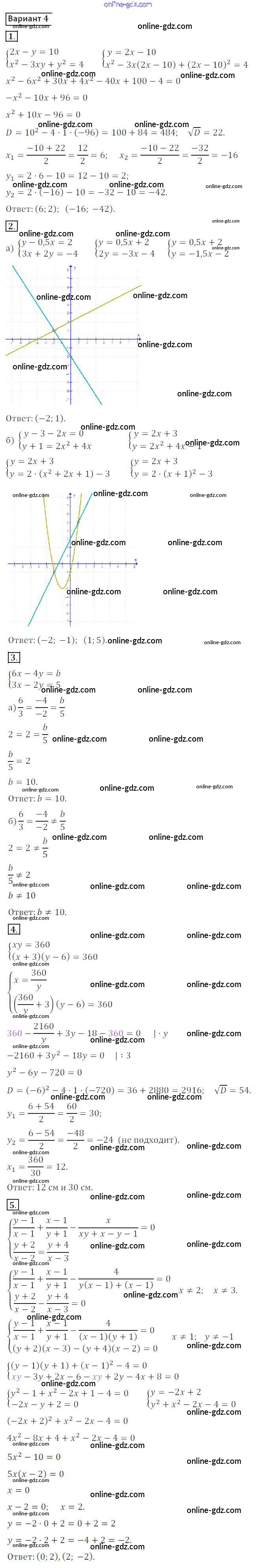 Готовые домашние задания по Алгебре за 8 класс Дидактические материалы Потапов, Шевкин МГУ - школе 2017 - КР №6 Контрольные работы вариант 4