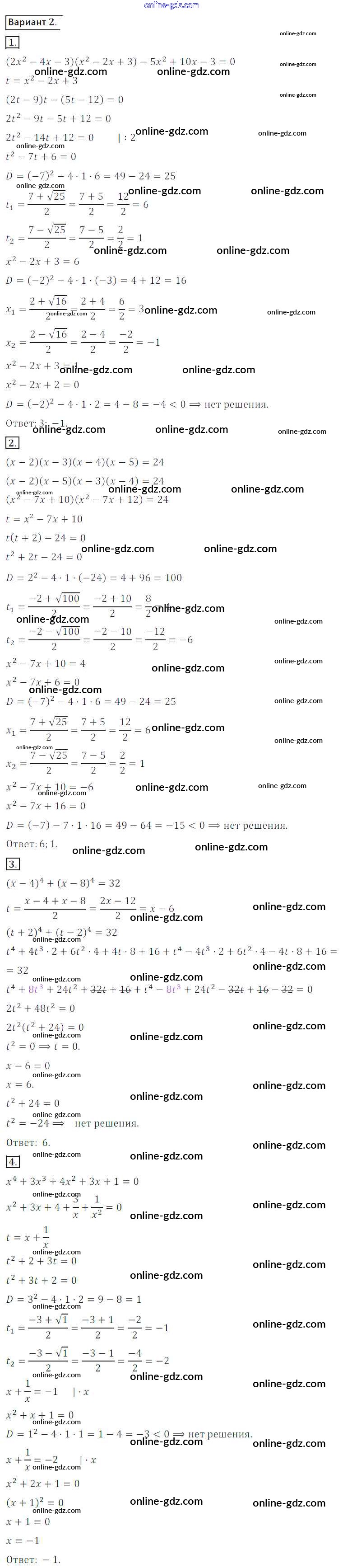 Готовые домашние задания по Алгебре за 8 класс Дидактические материалы Потапов, Шевкин МГУ - школе 2017 - СР №10. Замена неизвестного при решении рациональных уравнений Самостоятельные работы вариант 2