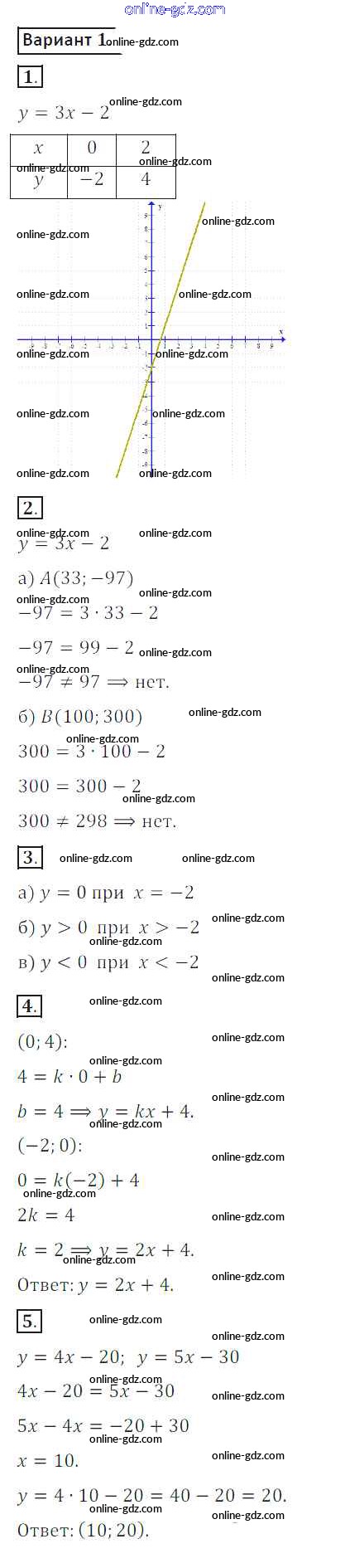 Готовые домашние задания по Алгебре за 8 класс Дидактические материалы Потапов, Шевкин МГУ - школе 2017 - СР №15. Линейная функция Самостоятельные работы вариант 1