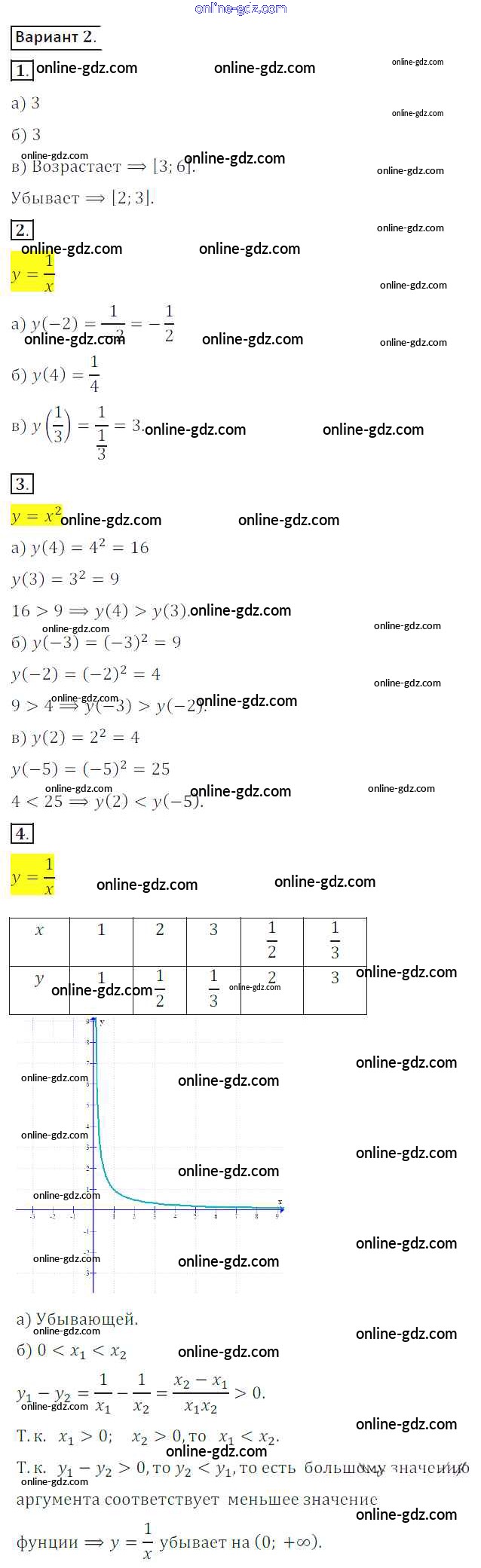Готовые домашние задания по Алгебре за 8 класс Дидактические материалы Потапов, Шевкин МГУ - школе 2017 - СР №2. Функция. График функции Самостоятельные работы вариант 2