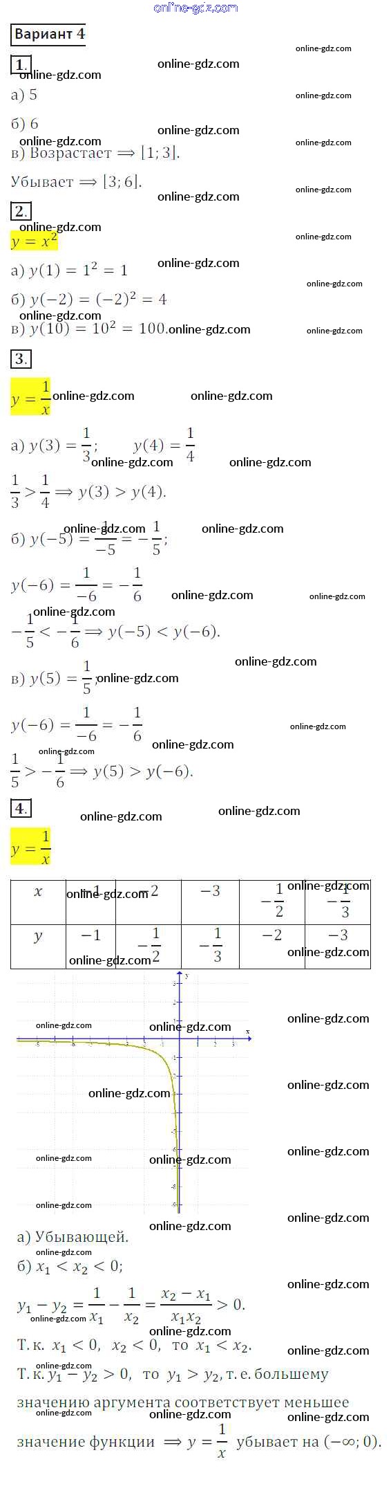 Готовые домашние задания по Алгебре за 8 класс Дидактические материалы Потапов, Шевкин МГУ - школе 2017 - СР №2. Функция. График функции Самостоятельные работы вариант 4