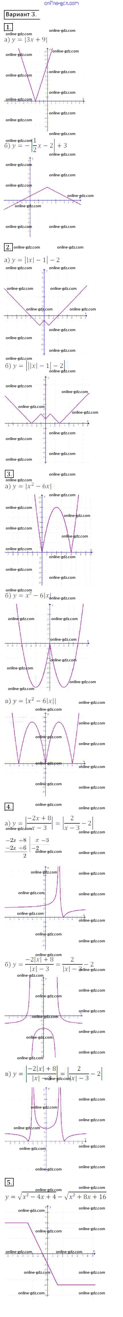 Готовые домашние задания по Алгебре за 8 класс Дидактические материалы Потапов, Шевкин МГУ - школе 2017 - СР №20. Графики функций, содержащих модули Самостоятельные работы вариант 3