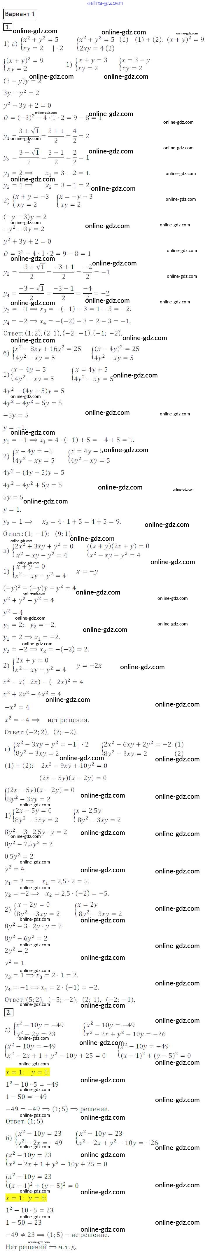 Готовые домашние задания по Алгебре за 8 класс Дидактические материалы Потапов, Шевкин МГУ - школе 2017 - СР №22. Системы уравнений второй степени Самостоятельные работы вариант 1
