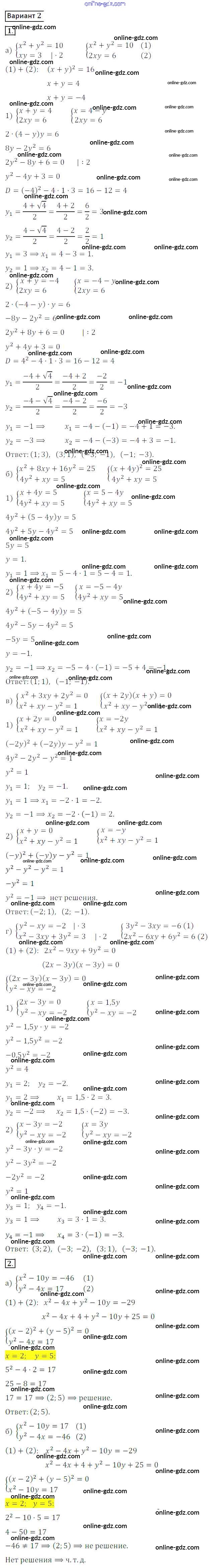 Готовые домашние задания по Алгебре за 8 класс Дидактические материалы Потапов, Шевкин МГУ - школе 2017 - СР №22. Системы уравнений второй степени Самостоятельные работы вариант 2