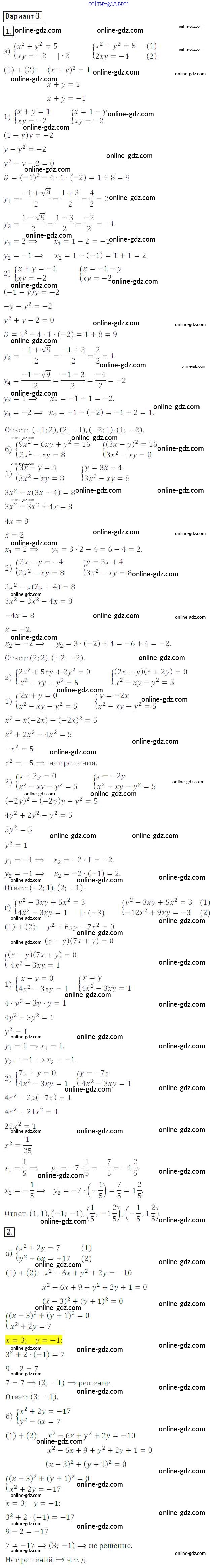Готовые домашние задания по Алгебре за 8 класс Дидактические материалы Потапов, Шевкин МГУ - школе 2017 - СР №22. Системы уравнений второй степени Самостоятельные работы вариант 3