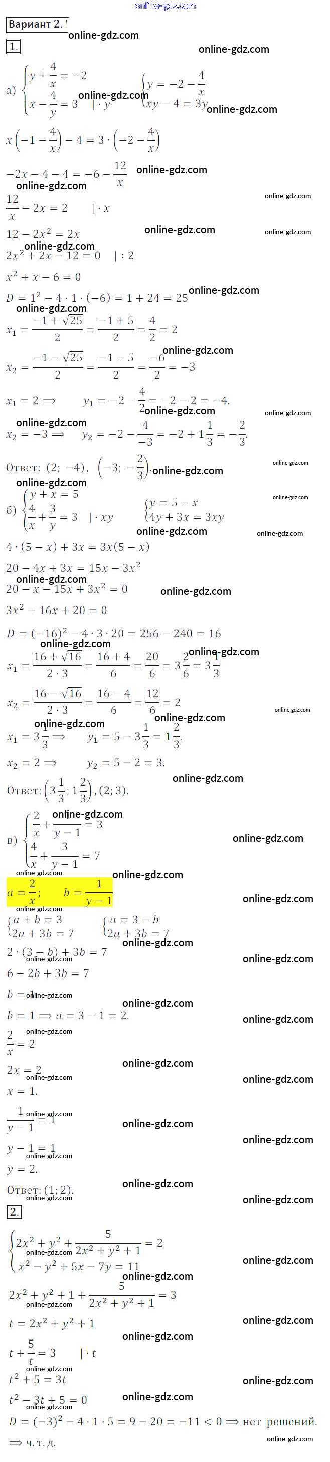 Готовые домашние задания по Алгебре за 8 класс Дидактические материалы Потапов, Шевкин МГУ - школе 2017 - СР №23. Системы рациональных уравнений Самостоятельные работы вариант 2