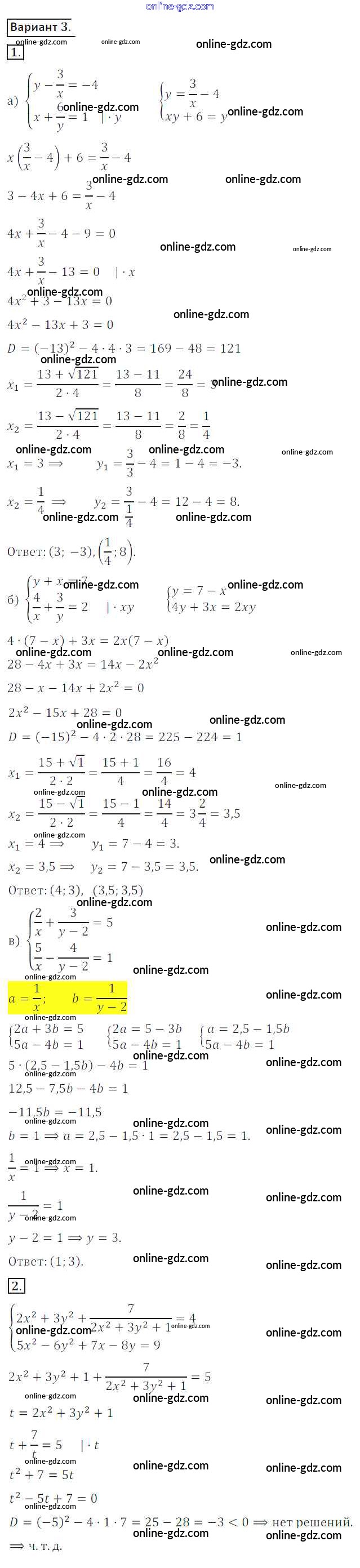 Готовые домашние задания по Алгебре за 8 класс Дидактические материалы Потапов, Шевкин МГУ - школе 2017 - СР №23. Системы рациональных уравнений Самостоятельные работы вариант 3