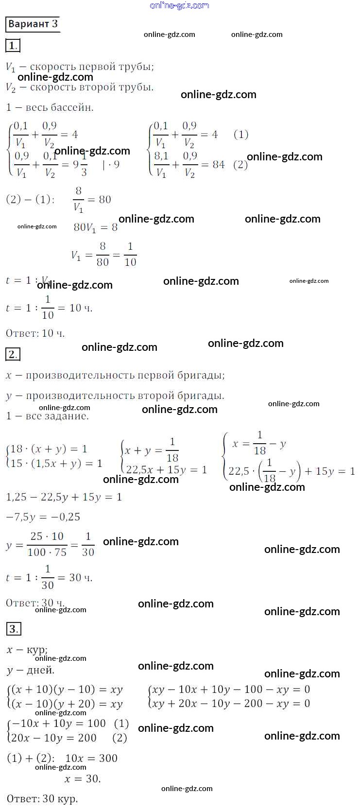 Готовые домашние задания по Алгебре за 8 класс Дидактические материалы Потапов, Шевкин МГУ - школе 2017 - СР №25. Решение задач при помощи систем уравнений Самостоятельные работы вариант 3