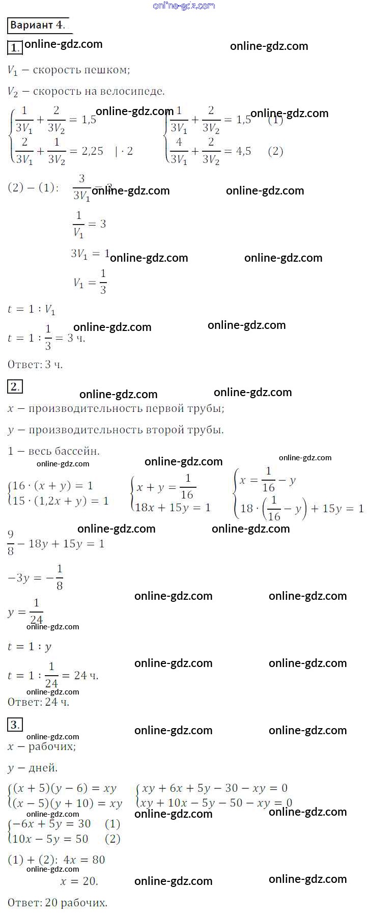 Готовые домашние задания по Алгебре за 8 класс Дидактические материалы Потапов, Шевкин МГУ - школе 2017 - СР №25. Решение задач при помощи систем уравнений Самостоятельные работы вариант 4