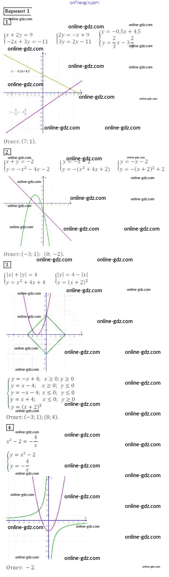 Готовые домашние задания по Алгебре за 8 класс Дидактические материалы Потапов, Шевкин МГУ - школе 2017 - СР №27. Графический способ решения систем уравнений Самостоятельные работы вариант 1