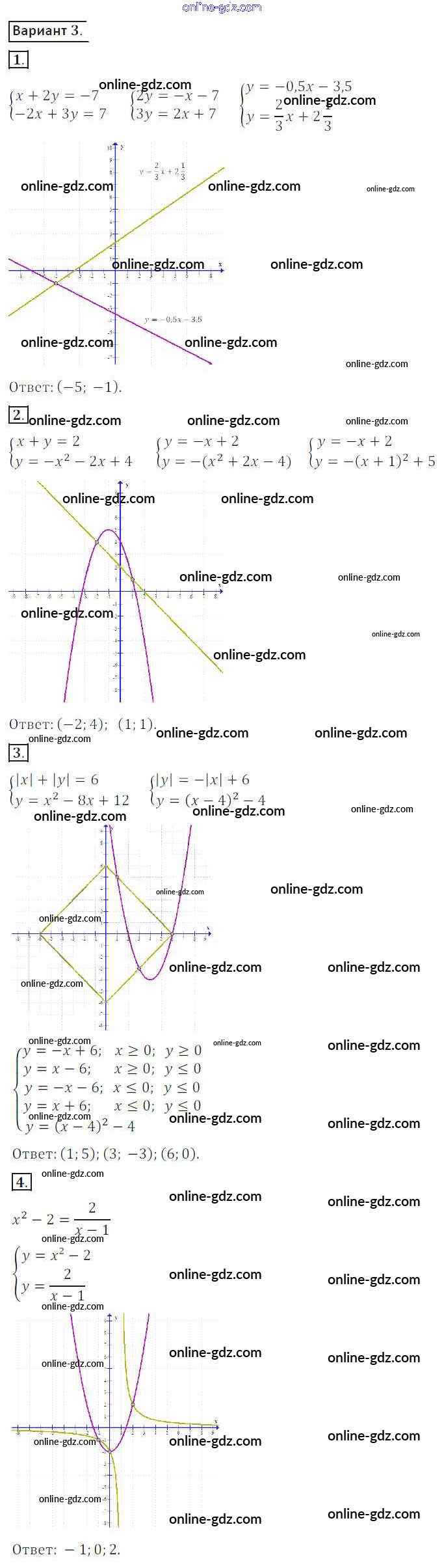 Готовые домашние задания по Алгебре за 8 класс Дидактические материалы Потапов, Шевкин МГУ - школе 2017 - СР №27. Графический способ решения систем уравнений Самостоятельные работы вариант 3