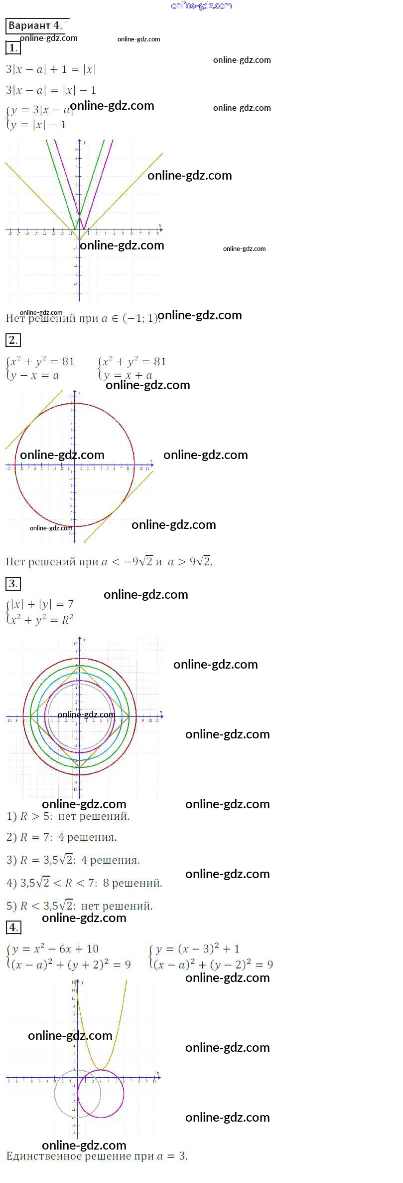 Готовые домашние задания по Алгебре за 8 класс Дидактические материалы Потапов, Шевкин МГУ - школе 2017 - СР №28. Графический способ решения задач с параметром Самостоятельные работы вариант 4