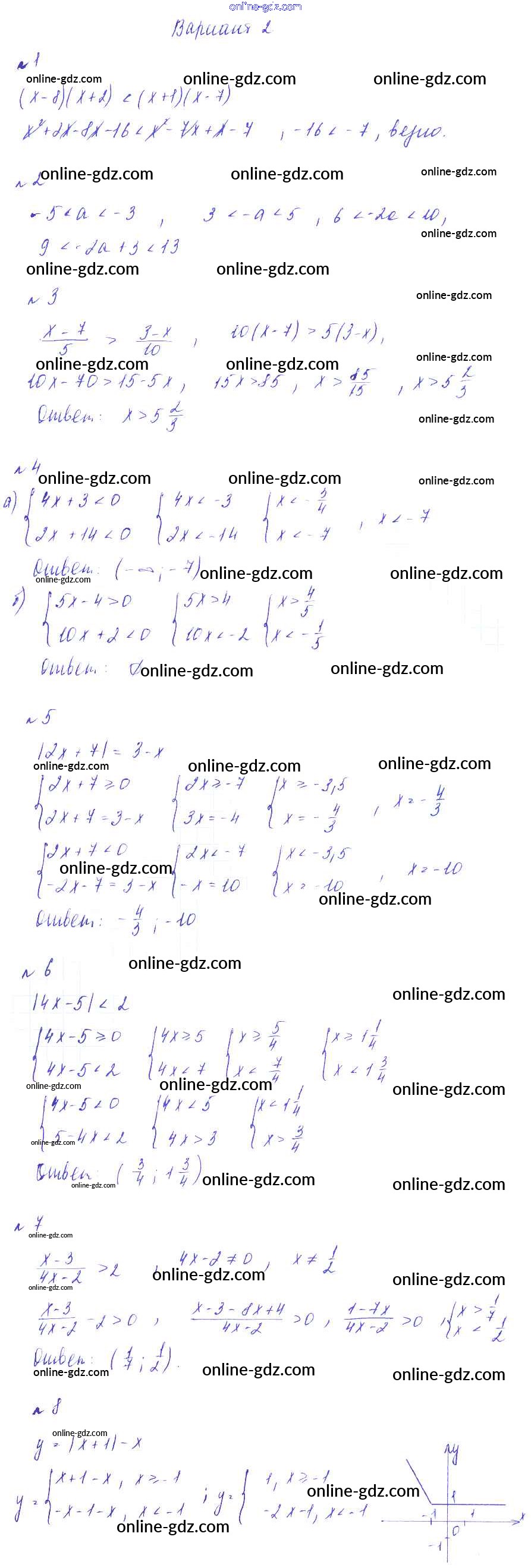 Готовые домашние задания по Алгебре за 8 класс Дидактические материалы Зив, Гольдич 2012 - КР №1. Неравенства. Варианты Контрольные работы 2