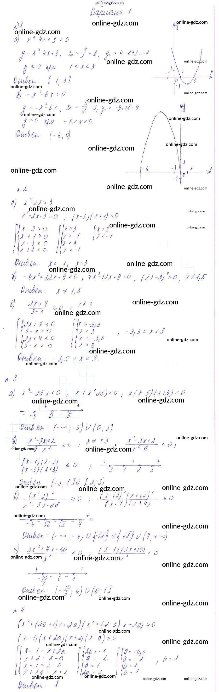 Готовые домашние задания по Алгебре за 8 класс Дидактические материалы Зив, Гольдич 2012 - КР №5. Квадратичная функция. Варианты Контрольные работы 1