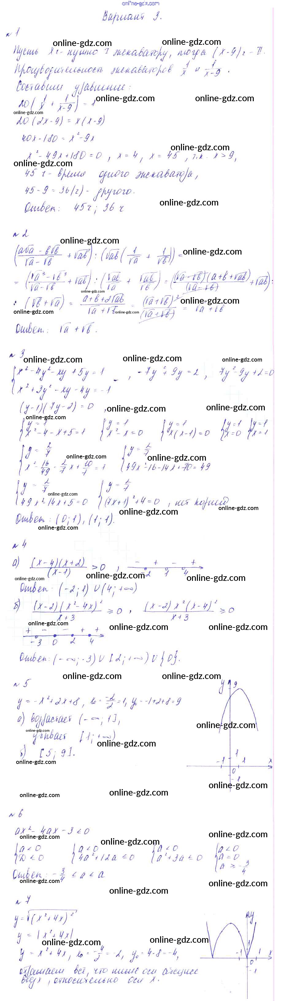 Готовые домашние задания по Алгебре за 8 класс Дидактические материалы Зив, Гольдич 2012 - КР №6. Итоговая. Варианты Контрольные работы 3