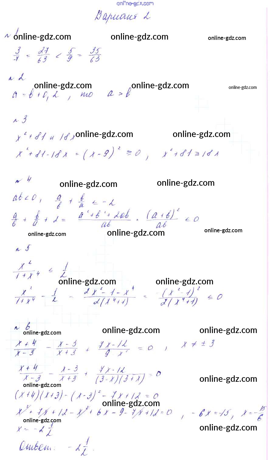 Готовые домашние задания по Алгебре за 8 класс Дидактические материалы Зив, Гольдич 2012 - СР №1. Положительные и отрицательные числа. Числовые неравенства Самостоятельные работы Вариант-2
