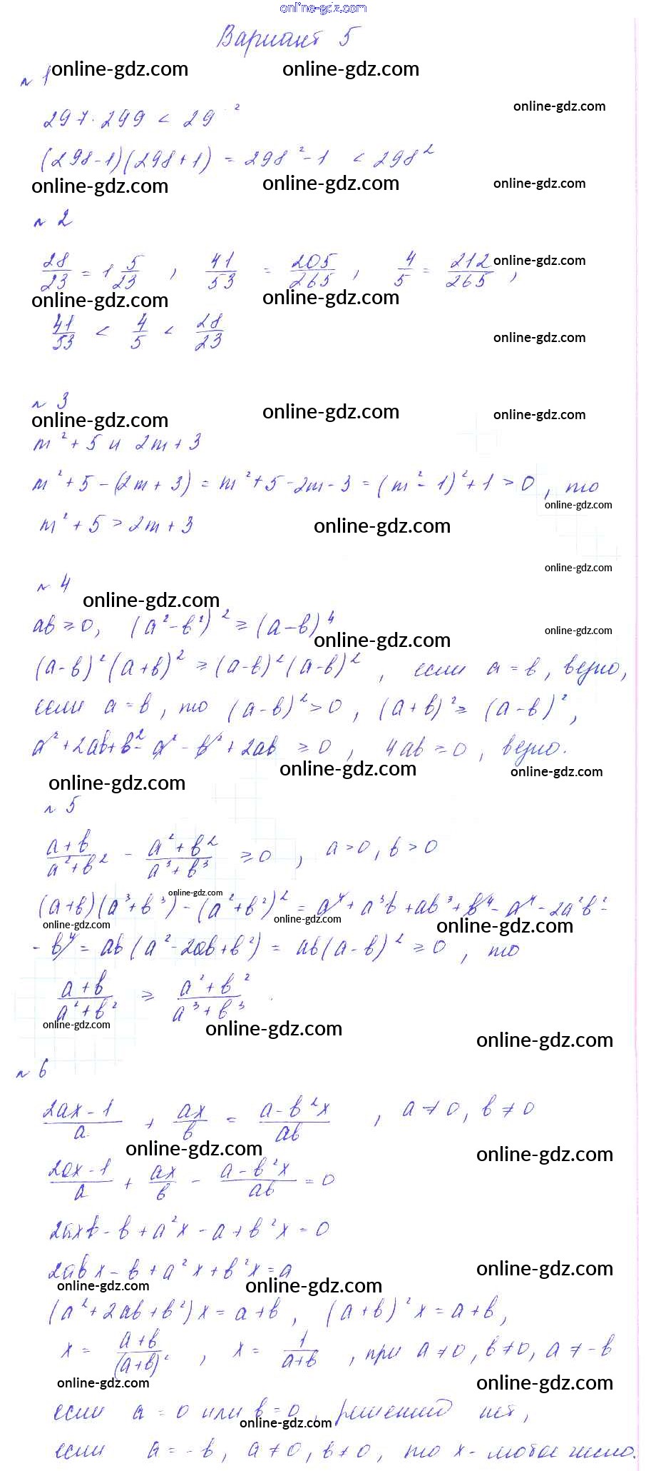 Готовые домашние задания по Алгебре за 8 класс Дидактические материалы Зив, Гольдич 2012 - СР №1. Положительные и отрицательные числа. Числовые неравенства Самостоятельные работы Вариант-5