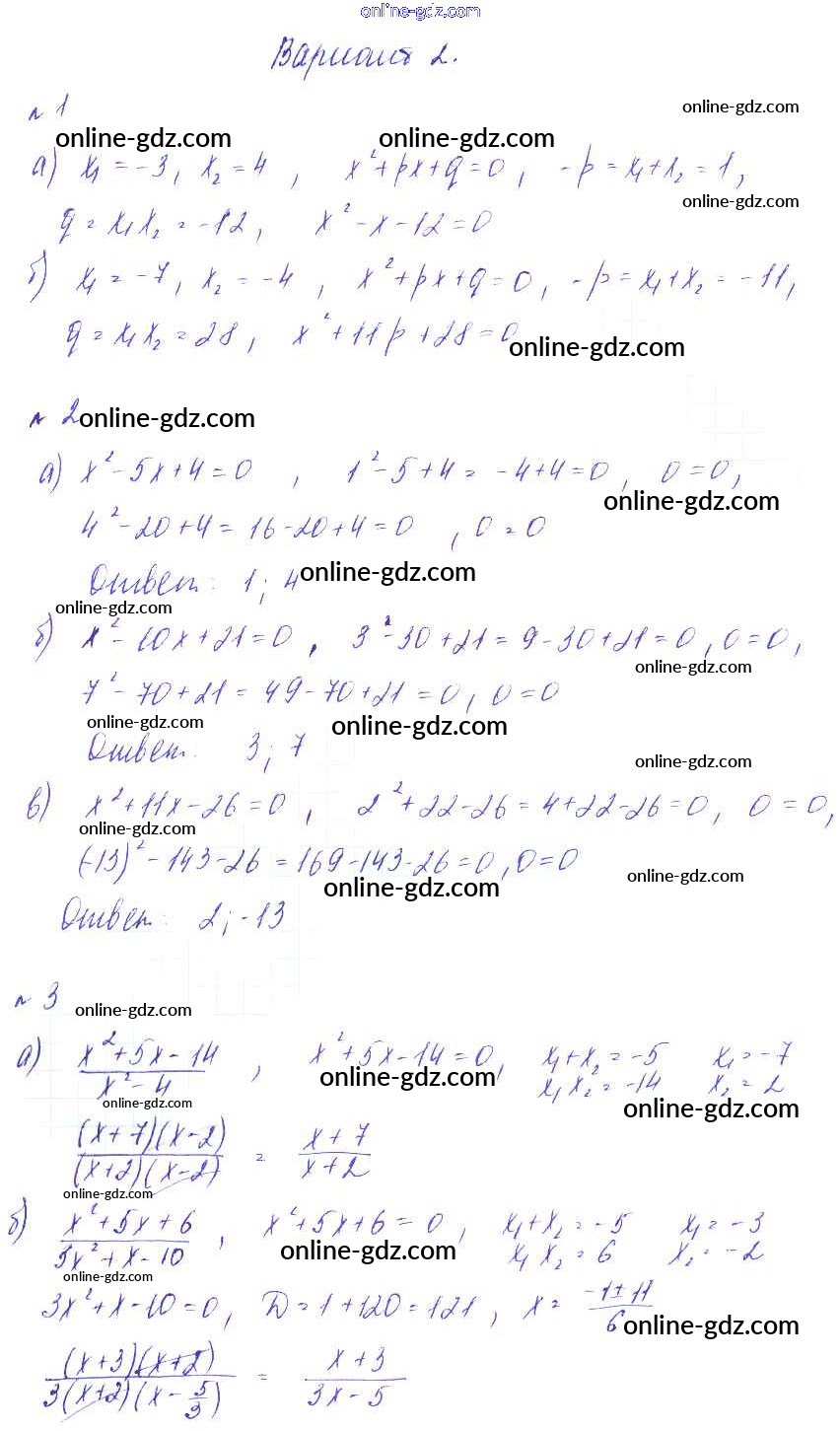 Готовые домашние задания по Алгебре за 8 класс Дидактические материалы Зив, Гольдич 2012 - СР №11. Теорема Виета Самостоятельные работы Вариант-2