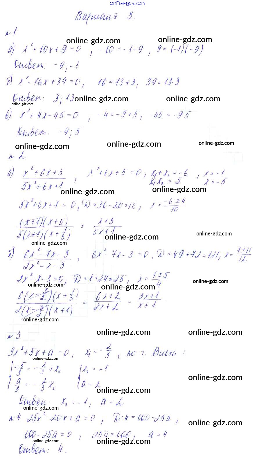 Готовые домашние задания по Алгебре за 8 класс Дидактические материалы Зив, Гольдич 2012 - СР №11. Теорема Виета Самостоятельные работы Вариант-3