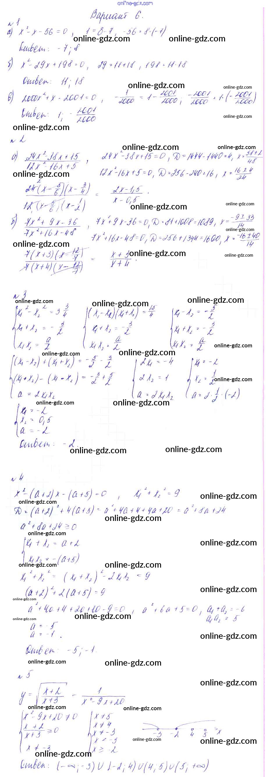 Готовые домашние задания по Алгебре за 8 класс Дидактические материалы Зив, Гольдич 2012 - СР №11. Теорема Виета Самостоятельные работы Вариант-6