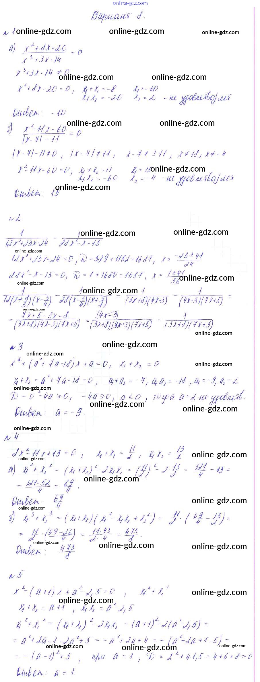 Готовые домашние задания по Алгебре за 8 класс Дидактические материалы Зив, Гольдич 2012 - СР №11. Теорема Виета Самостоятельные работы Вариант-8