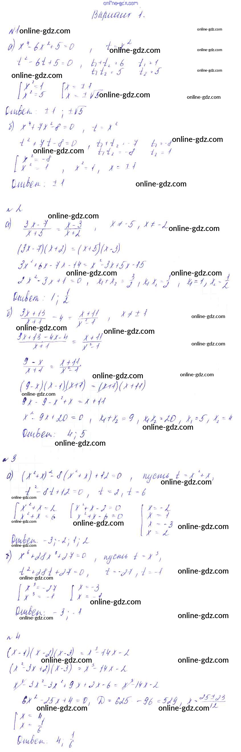 Готовые домашние задания по Алгебре за 8 класс Дидактические материалы Зив, Гольдич 2012 - СР №12. Уравнения, сводящиеся к квадратным Самостоятельные работы Вариант-1