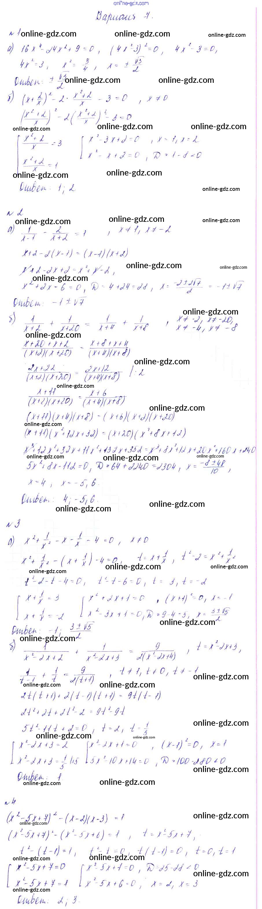 Готовые домашние задания по Алгебре за 8 класс Дидактические материалы Зив, Гольдич 2012 - СР №12. Уравнения, сводящиеся к квадратным Самостоятельные работы Вариант-7
