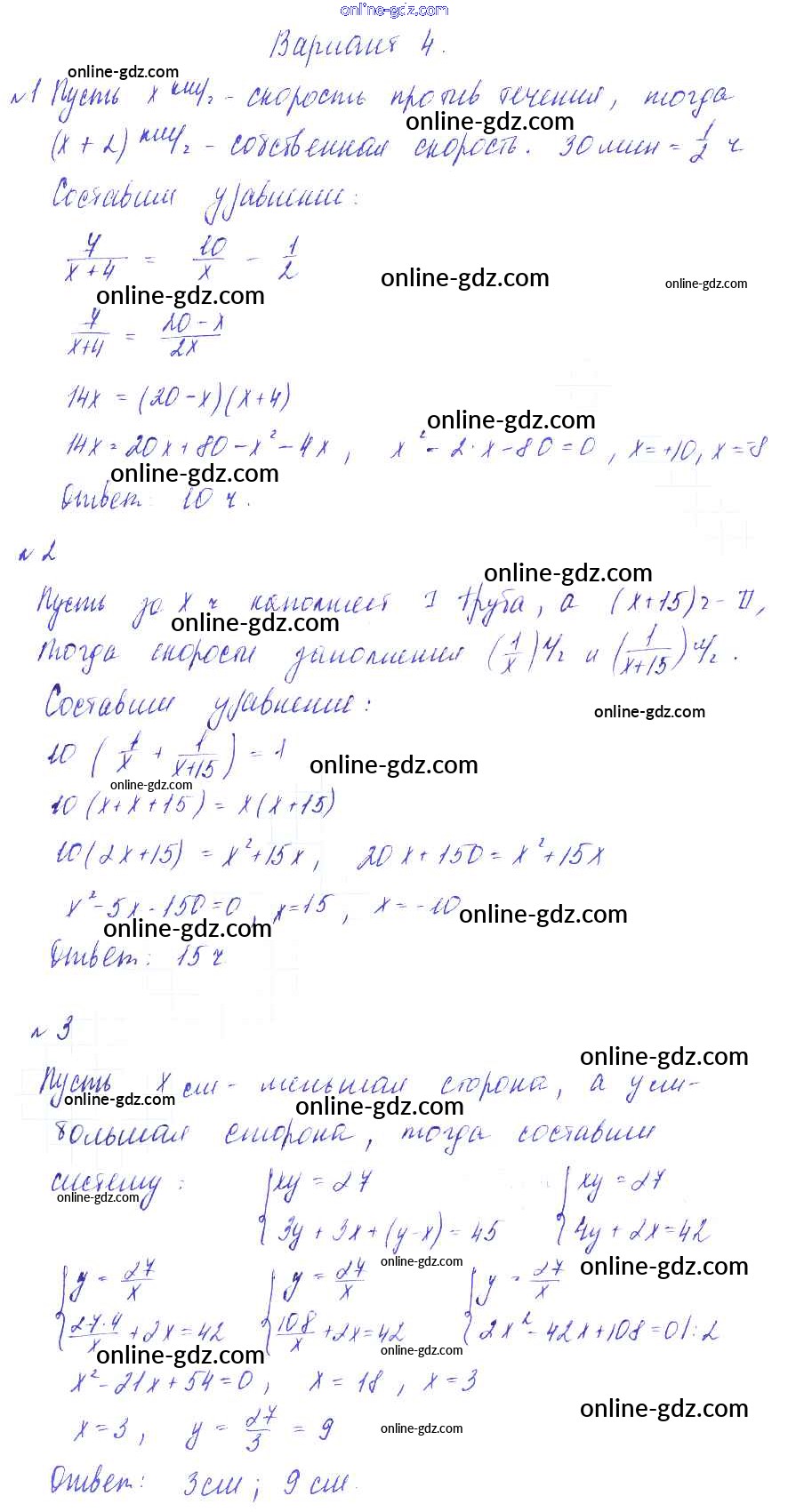 Готовые домашние задания по Алгебре за 8 класс Дидактические материалы Зив, Гольдич 2012 - СР №13. Решение задач с помощью квадратных уравнений Самостоятельные работы Вариант-4