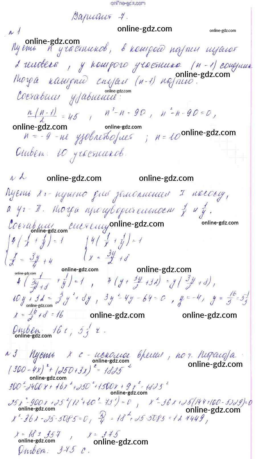 Готовые домашние задания по Алгебре за 8 класс Дидактические материалы Зив, Гольдич 2012 - СР №13. Решение задач с помощью квадратных уравнений Самостоятельные работы Вариант-7