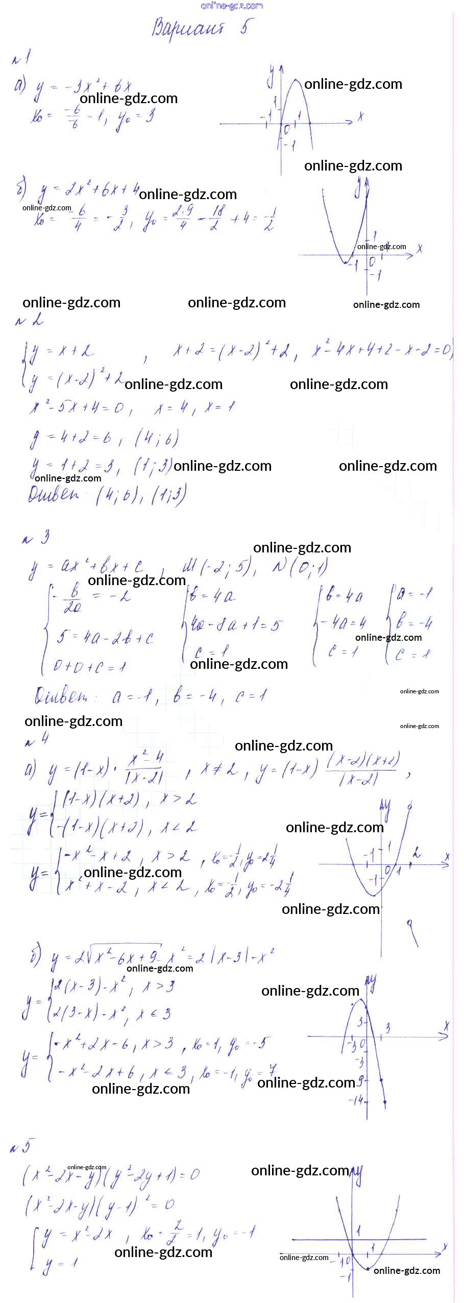 Готовые домашние задания по Алгебре за 8 класс Дидактические материалы Зив, Гольдич 2012 - СР №15. Квадратные неравенства Самостоятельные работы Вариант-5