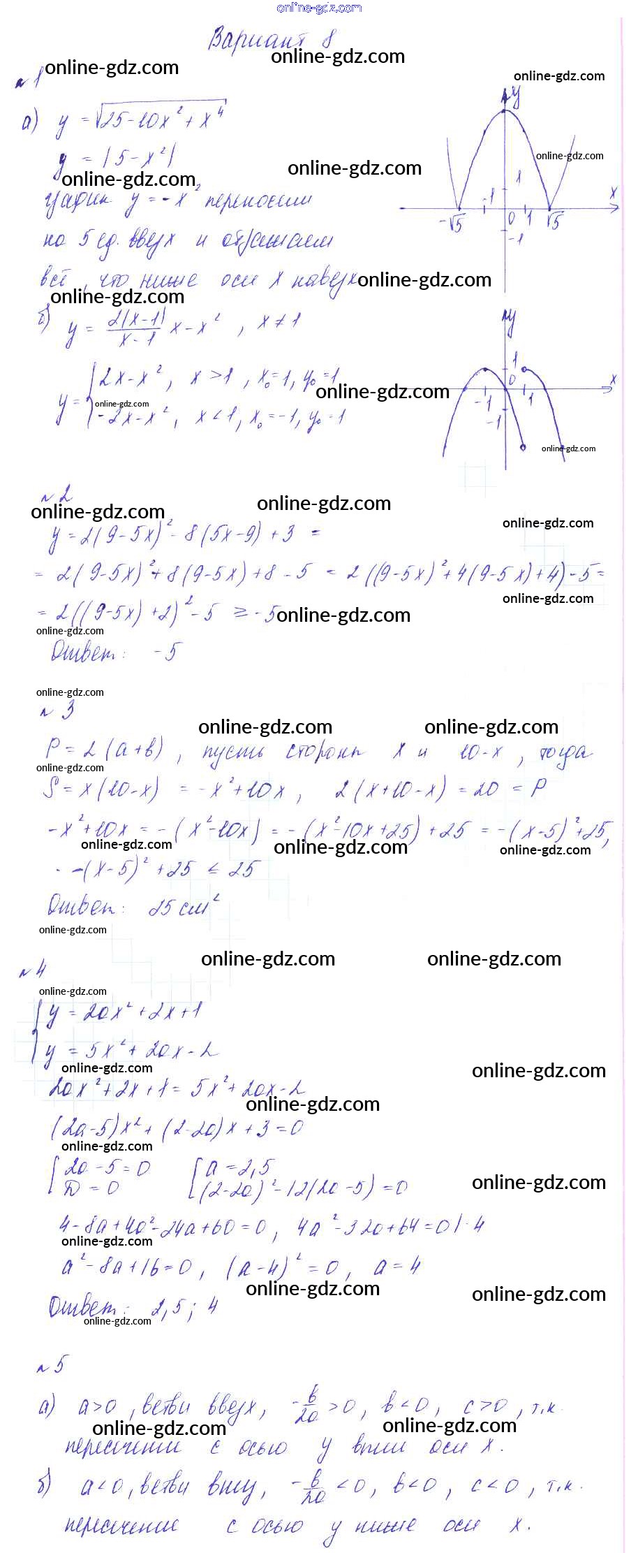 Готовые домашние задания по Алгебре за 8 класс Дидактические материалы Зив, Гольдич 2012 - СР №15. Квадратные неравенства Самостоятельные работы Вариант-8