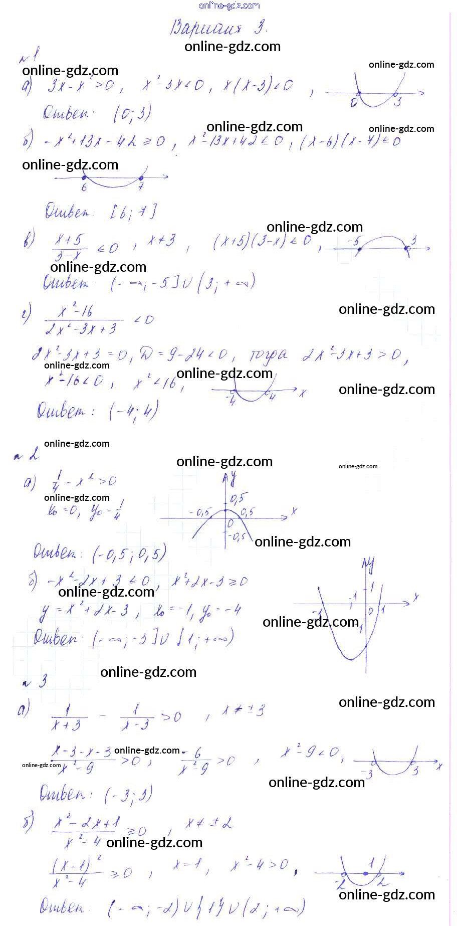 Готовые домашние задания по Алгебре за 8 класс Дидактические материалы Зив, Гольдич 2012 - СР №16. Метод интервалов Самостоятельные работы Вариант-3